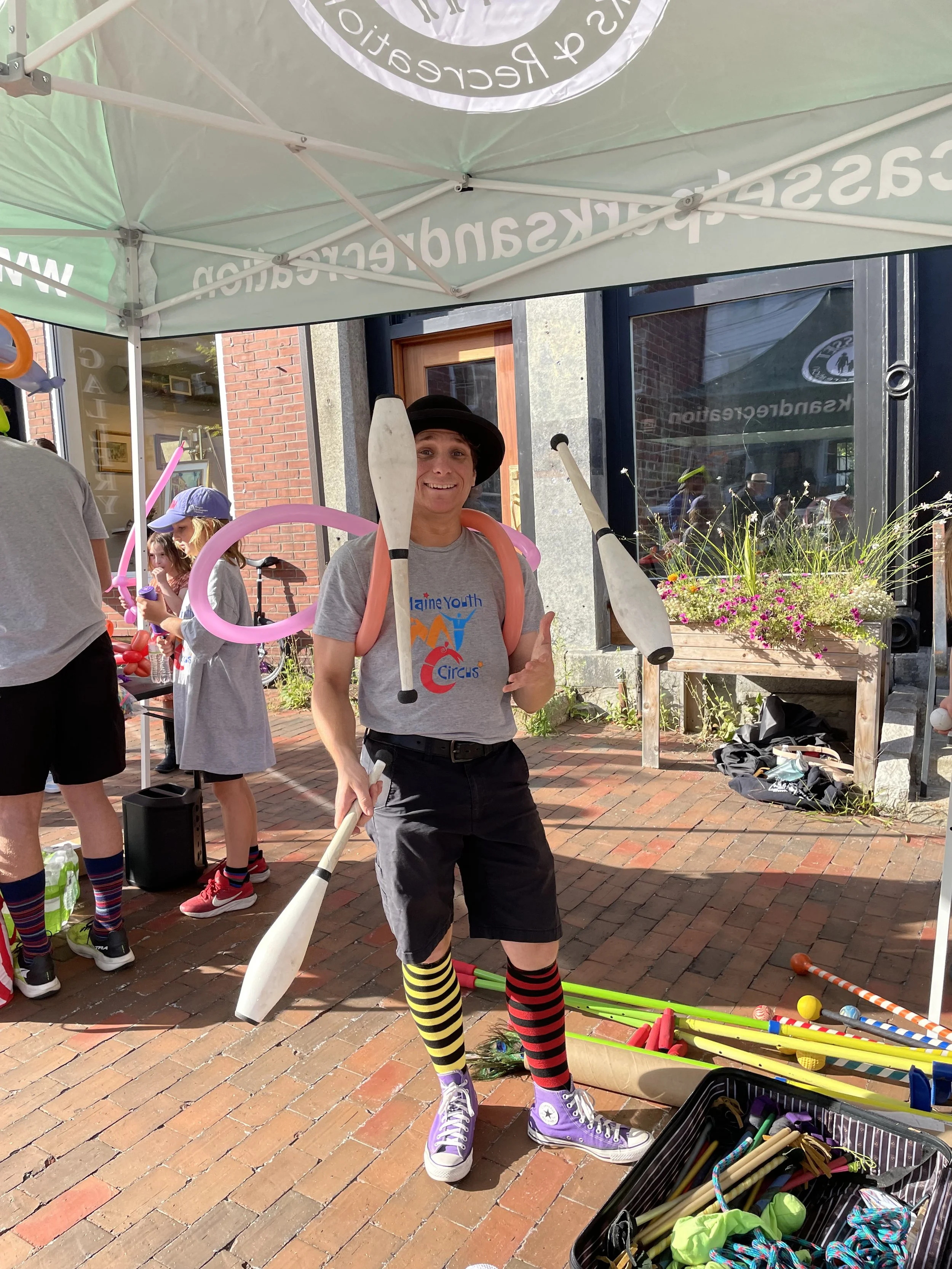 Performers from Maine Youth Circus juggled and entertained on Wiscasset Village sidewalks in August 2025!